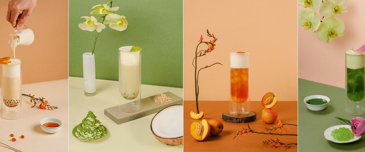 - Pandan Lotus Milk Tea: Journey to a delicate fragrant lotus pond and immerse yourself in the intertwining of lotus’s floral notes and pandan’s soothing aroma.