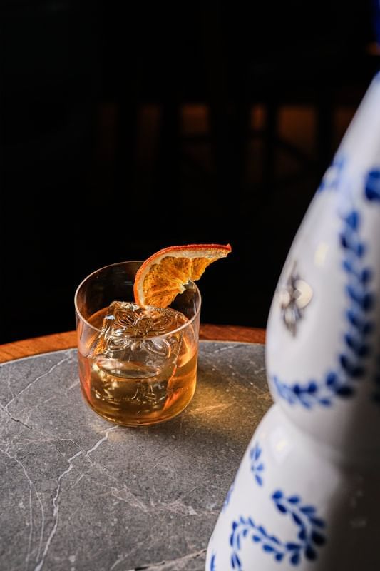 Oaxaca Old Fashioned: Một biến tấu của món Old Fashioned kinh điển với dư vị khói cay nồng. Clase Azul Reposado Tequila mượt mà mang đến những tầng hương tinh tế của vani và caramel, hòa quyện cùng nét khói trầm ấm, đầy bí ẩn từ Los Siete Misterios Mezcal.