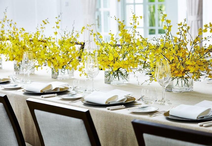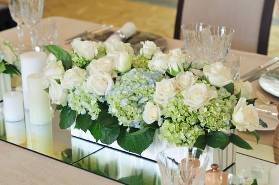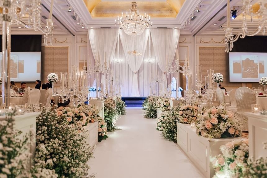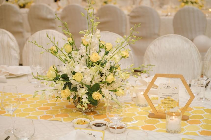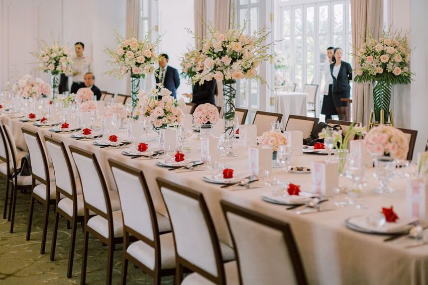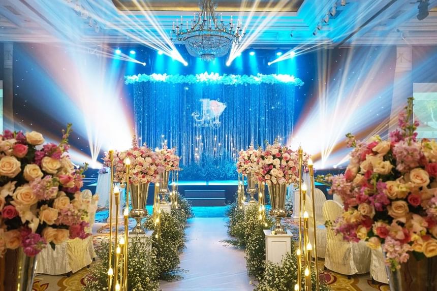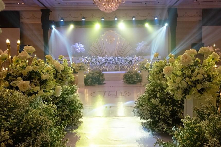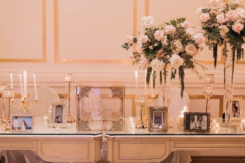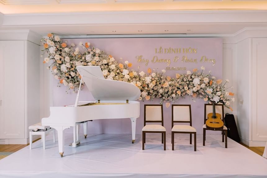 Đội ngũ thiết kế hoa chuyên nghiệp tại khách sạn sẽ giúp bạn biến đám cưới trong mơ lộng lẫy thành hiện thực với trang trí cưới tinh tế, đèn nến cùng hoa tươi độc đáo.
