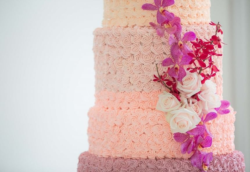 Chiếc bánh cưới độc đáo, một trong những điểm nhấn của đêm tiệc, sẽ được thiết kế bởi đội ngũ Bếp bánh chuyên nghiệp, nhằm chiều theo mong muốn và hương vị bạn yêu thích.